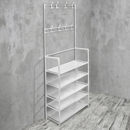 Стойка-стеллаж для одежды и обуви 4 яруса полок + 2 яруса крючков, размер 171 х 60 х 27 см / Стеллаж складной в прихожую, цвет микс