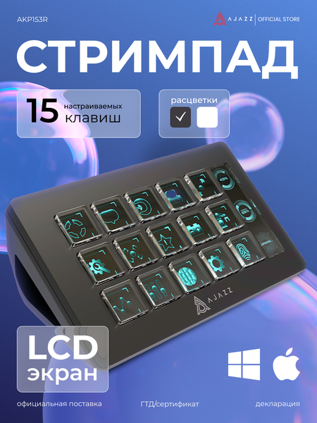 Клавиатура стримпад AKP153R – это функциональное и удобное решение для тех, кто ценит комфорт и эффективность работы за компьютером. С помощью этой компактной панели управления вы сможете легко управлять своим рабочим пространством. Она полностью на русском языке. Основные характеристики: 15 программируемых клавиш, которые позволяют настроить выполнение часто используемых команд или действий одним нажатием кнопки. Иконки настраиваются под индивидуальный стиль. Макропрограммирование: Возможность записи сложных последовательностей нажатий клавиш для автоматизации рутинных задач. Панель управления настольным помощником: Легко управляйте всеми функциями вашего компьютера прямо с клавиатуры. Эргономичный дизайн: Удобные клавиши обеспечивают комфорт при длительной работе. Подключение через USB-порт: Простое подключение к компьютеру. Эта клавиатура станет незаменимым помощником как для офисного работника, так и для геймера, позволяя оптимизировать рабочий процесс и повысить производительность.