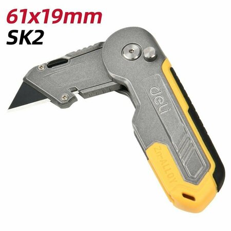 Строительный складной нож с Т-образным лезвием Deli DL007Z (3+1 лезвие в комплекте, стропорез, сталь SK2, корпус из цинкового сплава)