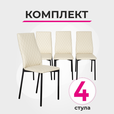 Стулья для кухни 4 шт со спинкой от производителя. Ножки сделаны из металлического каркаса. Обладают повышенной прочностью и устойчивостью, делая их идеальным выбором для ежедневного использования. Материал обивки стеганная экокожа. Стулья кухонные прочные и влагоустойчивые. Удобный анатомический изгиб спинки, подогнанный под спину и мягкое сиденье. Приятный материал из стеганной эко-кожи легко очищается при помощи влажных салфеток. Комплект стульев выдержит вес до 120 кг. Делаем на совесть.