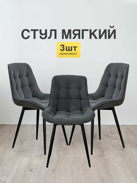 Стулья МК Stella Румба 3 шт. для кухни, с мягкой спинкой и сидением без подлокотников
