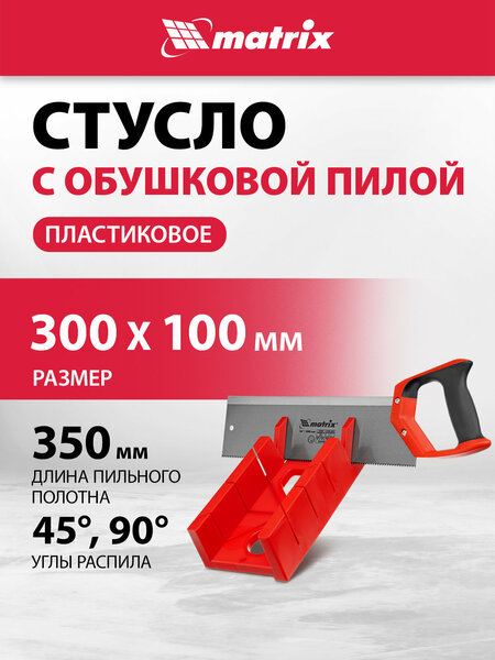 Пластиковое стусло Matrix 22550 длиной 300 комплектуется обушковой пилой 350 мм с двухкомпонентной рукояткой. Набор рассчитан на распиловку деревянных, полиуретановых и пластиковых заготовок размером до 100 х 60 мм. Благодаря ему можно осуществлять рез в горизонтальной плоскости под углом 90 градусов и в вертикальной под углом 45/90 градусов. Стусло станет незаменимым помощником для частных мастеров и профессионалов при необходимости плотной стыковки деталей. Максимальная ширина обработки заготовок составляет 95 мм, глубина — 45 мм.