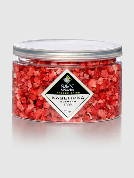 Сублимированная клубника кусочками - это полностью натуральный продукт. Она не содержит красителей, ароматизаторов и искусственных добавок. Ягоды подвергаются мгновенной заморозке с последующей вакуумной сушкой. Благодаря этому процессу из клубники удаляется влага, и она сохраняет прекрасный вкус, аромат и максимум полезных свойств. Клубничка является богатым источником витаминов (А, В, С, Е) и минералов (калий, фосфор, кальций, магний, кальций, железо, йод, марганец), которые которые необходимы для крепкого иммунитета, красоты и долголетия. Такая ягода станет полезным и хрустящим перекусом. Она прекрасно подойдет для приготовления десертов, смузи или фруктовых салатов. Ее можно добавлять в кремы для придания ягодного вкуса и натурального цвета.