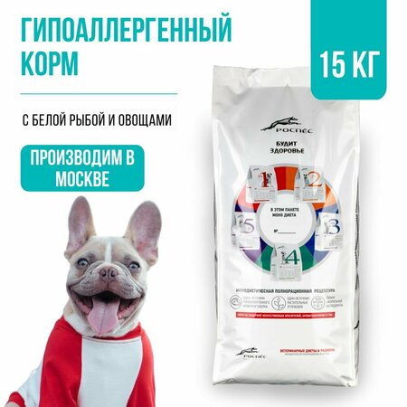 РосПёс, Моно-диета №4, рыба с овощами - полнорационная формула для взрослых собак, склонных к пищевой аллергии или имеющих чувствительное пищеварение; подходит для собак с избыточным весом:
