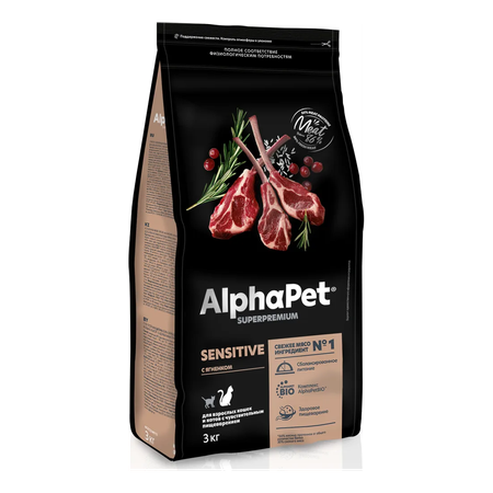 Сухой корм AlphaPet (Альфапет) Superpremium для взрослых кошек и котов с чувствительным пищеварением с ягненком, 3 кг