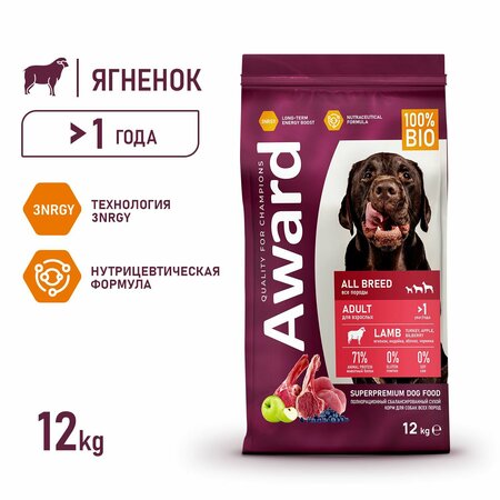Сухой корм для взрослых собак всех пород с ягненком с индейкой с добавлением яблока и черники 12 кг. Корм изготовлен из 100% натуральных ингредиентов по инновационной формуле — это обеспечивает комплексную нутрицевтическую поддержку организма питомца. При изготовлении корма использовалась технология 3NRGY — сочетание полезных углеводов, дающее длительный запас энергии и чувство сытости. Корм обогащен полиненасыщенными жирными кислотами, которые повышают качество шерсти и укрепляют иммунитет. Пробиотики и пребиотики помогают сохранять естественный баланс кишечной микрофлоры и способствуют оптимальному усвоению питательных веществ. В состав добавлено яблоко — отличный источник клетчатки, улучшающий работу ЖКТ. Без красителей и консервантов.