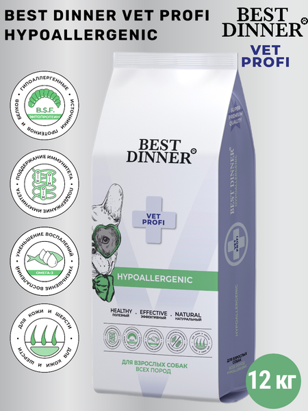 Сухой корм Best Dinner Vet Profi Hypoallergenic, диетический, при пищевой аллергии и непереносимости у собак 12 кг
