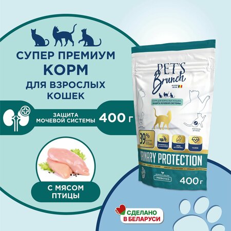 Сухой корм для взрослых кошек, защита мочевой системы «PET’S BRUNCH URINARY PROTECTION» - представляет собой специально разработанное питание для кошек и котов, которое помогает поддерживать здоровую мочевую систему и относится к премиум-классу. Наш сухой корм обеспечивает полноценное и сбалансированное питание для вашего питомца, включающее в себя все необходимые питательные вещества, витамины и минералы. Он разработан с использованием высококачественных ингредиентов, которые привлекают кошку своим вкусом и стимулируют аппетит. Основным преимуществом корма является его специальная формула, разработанная для поддержания здоровой мочевой системы кошки или кота. Она помогает предотвратить образование мочевых камней и песчинок, которые могут привести к проблемам с мочевыводящей системой. Корм URINARY МКБ содержит уникальный комплекс питательных веществ, который помогает оптимизировать уровень pH в моче, создавая неблагоприятную среду для образования камней и песчинок. Кроме того, он способствует достаточному образованию и выведению мочи, что помогает очищать мочевую систему и предотвращать ее заболевания. Наш сухой корм также содержит высокое содержание воды, что способствует увеличению поступления жидкости в организм кошки или кота. Это особенно важно для поддержания здоровой мочевой системы, так как увлажненная моча помогает вымывать вредные вещества из организма. Так же данный корм подойдет и для кошек после стерилизаци. Выбирая наш сухой корм, вы обеспечиваете своего питомца полноценным и сбалансированным питанием, специально разработанным для здоровья его мочевой системы. Поддерживайте его здоровье и жизненную активность с помощью нашего корма и наслаждайтесь счастливыми и здоровыми моментами вместе. PET'S BRUNCH - забота о здоровье вашего питомца.