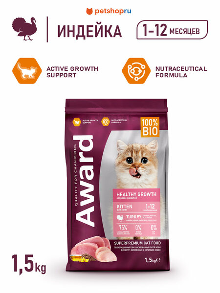 Корм AWARD изготовлен из 100% натуральных ингредиентов по инновационной формуле - это обеспечивает комплексную нутрицевтическую поддержку организма питомца. Полиненасыщенные жирные кислоты в составе способствуют гармоничному росту котенка и укрепляет его иммунитет. Пребиотики и пробиотики помогают сохранять естественный баланс кишечной микрофлоры и способствуют оптимальному усвоению питательных веществ. Корм AWARD содержит таурин - незаменимую аминокислоту для поддержания работы сердечно-сосудистой системы, нервной системы, печени, почек и мозга. Без красителей и консервантов. Вся информация предоставлена продавцом Без красителей и консервантов.