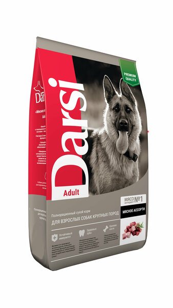 Ингредиенты в составе сухого корма Darsi «Мясное ассорти» для собак. Мясо — ингредиент №1. Мясная мука (в том числе телятина) — полноценный источник белка. Мясной протеин с полноценным аминокислотным составом обеспечивает поддержку мышц. Специальная технология приготовления улучшает усвояемость, снижает нагрузку на ЖКТ. Цельнозерновая пшеница, богатая питательными веществами и клетчаткой, улучшает стул и поддерживает здоровое пищеварение. Печень отличается высоким содержанием железа и витамина А, а также витаминов группы В, фосфора и магния. Масло кукурузное положительно влияет на ЖКТ, служит источником энергии и предупреждает воспалительные процессы в организме. Комплекс витаминов и минералов (А, В4, Д3, Е, В3, С, В1, В5, В2, В6, В9, К3, В7, В12, калий, железо, цинк, марганец, медь, йод, селен) делает шерсть и кожу здоровой, поддерживает остроту зрения и обеспечивает энергией. Витамин Е — повышает защитные функции организма, оказывает благотворное влияние на репродуктивную, нервную и сосудистую системы. Маис - является хорошим источником Омега-6 жирных кислот, которые способствует развитию здоровой кожи и блестящей шерсти, минералы, витамины, в том числе фолиевую кислоту, витамин С, ниацин и крахмал. Ячмень - содержит большое количество антиоксидантов, за счёт достаточно большого количества клетчатки полезен для стимуляции активности желудочно-кишечного тракта собак. Маннаноолигосахариды (МОС) — пребиотики, поддерживают здоровую, сбалансированную микрофлору кишечника и улучшают общее состояние здоровья животных. Отруби — являются отличным источником пищевых волокон (клетчатки), улучшают работу ЖКТ, регулируют и улучшают состояние микрофлоры кишечника. Минеральные вещества, оптимальные форма и структура крокет — благотворно влияют на развитие здоровых зубов и являются профилактикой возникновения зубного камня.