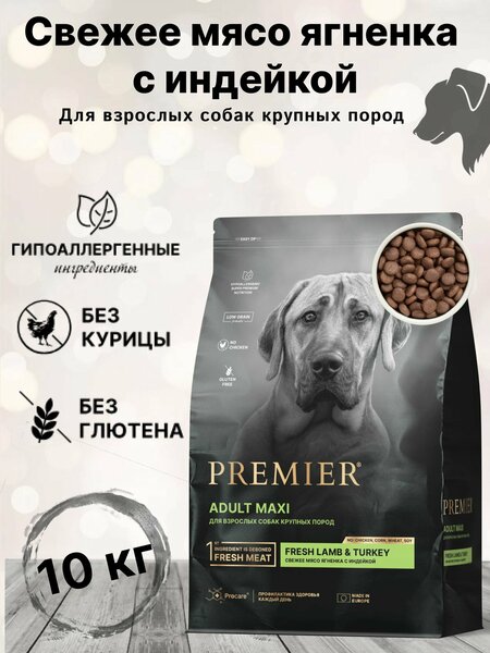 Сухой корм для собак Premier Dog Fresh Lamb&Turkey ADULT MAXI (Свежее мясо ягненка с индейки для взрослых собак крупных пород) 10 кг.