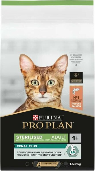 Линейка кормов PRO PLAN Sterilized — это сбалансированное питание, полностью отвечающее потребностям стерилизованных кошек, которое способствует укреплению здоровья мочевыделительной системы и поддержанию оптимального веса питомца. Корм содержит формулу OPTIRENAL — специальное сочетание питательных веществ, включающее антиоксиданты, аргинин и жирные кислоты омега-3, которые поддерживают здоровье почек животного.