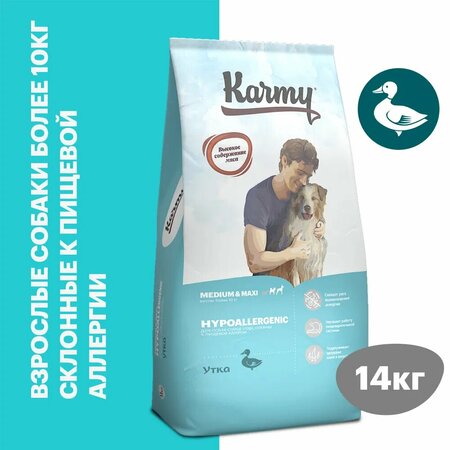 Сухой корм KARMY Hypoallergenic Medium & Maxi для средних и крупных пород, склонных к пищевой аллергии, Утка 14 кг.