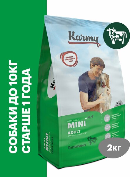 Сухой корм KARMY Mini Adult с Телятиной 2 кг. для взрослых собак мелких пород старше 1 года