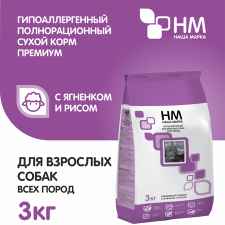 Корм сухой Наша Марка ягненок с рисом для взрослых собак всех пород (3 кг)
