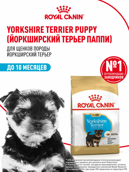 Корм сухой полнорационный для собак - Специально для щенков породы йоркширский терьер в возрасте до 10 месяцев YORKSHIRE TERRIER PUPPY (ЙОРКШИРСКИЙ ТЕРЬЕР ПАППИ) ROYAL CANIN®, подходящий для щенков породы йоркширский терьер в возрасте до 10 месяцев, специально разработан с учетом потребностей вашего щенка в питательных веществах в период роста. Формула сухого продукта Роял Канин поддерживает развитие иммунной системы, развитие мозга, пищеварительной системы. Поскольку иммунная система вашего щенка развивается постепенно, корм Royal Canin Yorkshire Terrier Puppy содержит эффективный комплекс антиоксидантов, включая витамин Е, для поддержания естественной защиты в период формирования его иммунной системы. Корм сухой полнорационный для собак Специально для щенков породы йоркширский терьер в возрасте до 10 месяцев содержит высококачественные белки (L. I. P.*), специально отобранные в силу высокой усвояемости, пребиотики (ФОС и МОС), а также клетчатку и клиноптилолит. Сочетание этих питательных веществ помогает поддерживать здоровье пищеварения. Кроме того, формула продукта также помогает поддерживать развитие мозга благодаря тому, что рацион обогащен жирной кислотой Омега-3 (DHA). Гранулы корма, форма, размер и текстура которых созданы специально для щенков йоркширского терьера. Масса нетто: 1.5 кг. *L. I. P: источники белков с высокой степенью усвояемости.