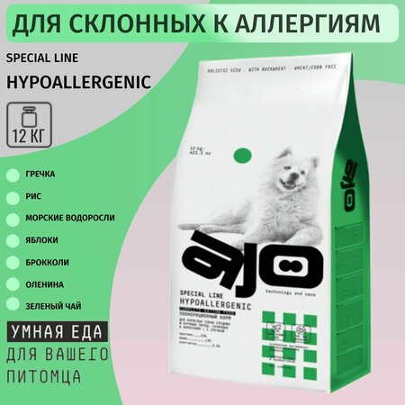 Сухой полнорационный корм AJO Dog Hypoallergenic для взрослых собак средних и крупных пород, склонных к аллергиям, с гречкой, 12кг