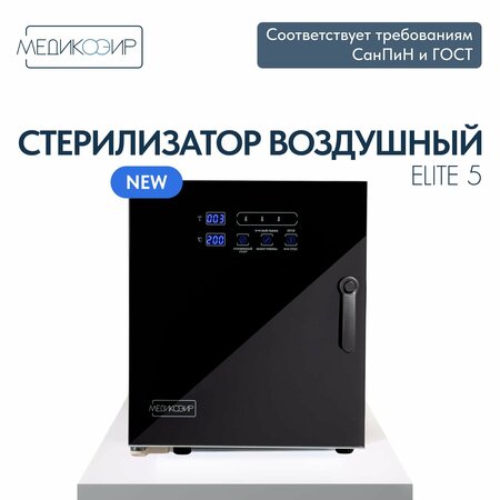 Стерилизатор Elite 5 от бренда МедикоЭир используется для воздушной стерилизации термическим способом медицинского и косметологического инструмента, посуды из стекла и прочих аксессуаров, термостойких вплоть до 200°С. Стерилизация осуществляется горячим воздухом в стальной камере устойчивой к коррозии объемом 5 литров. Стерилизатор находит применение в лабораториях, аптеках, салонах красоты, парикмахерских, ветеринарных клиниках и тату студиях. К преимуществам данной модели можно отнести: стильный и современный дизайн с панелью из каленого стекла, высокая производительность, высокое качество сборки, небольшой размер. Также держатели полочек выполнены с использованием метода формования и не имеют острых краев, о которые можно было бы повредиться. Камера обработки полностью герметична, отлично сдерживает температуру, уплотнители выполнены из высокотемпературной латексной резины замкнутого профиля. Сухожар имеет удобную и эргономичную ручку с удобным механизмом открытия дверцы. Тихий мотор вентилятора конвекции разработан специально для данной модели сухожара. В комплекте находятся три полочки, дополнительные можно приобрести в нашем магазине. Регистрационное удостоверение - отсутствует.