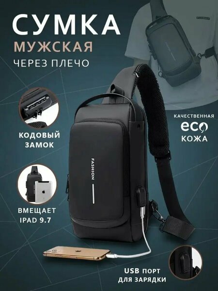 Сумка-барсетка мужская, через плечо, бананка, рюкзак с кодовым замком и USB зарядкой