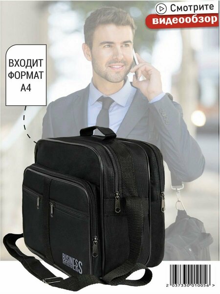 Легкая, вместительная, прочная мужская. Идеально подойдет для работы и для повседневного ношения через плечо. Длина плечевого ремня 147 см. Прочный замок-молния на всех карманах. Имеет водоотталкивающий, износостойкий материал. Два больших кармана отлично подойдут для документов а4, планшета контейнера с едой, термоса ланч бокс зонта, книги, смартфон. Удобна для ключей и мелких принадлежностей. и многого другого. Черная сумка мужская деловая на работу не требует особого ухода, загрязнения легко убирается с помощью мыльной воды. Сумка рабочая мужская будет удобна на работу и для обеда, ланч бокса а также подарок на 23 февраля. Сумка портфель большая удобная и практичная внимание: Надпись на сумке может отличаться!