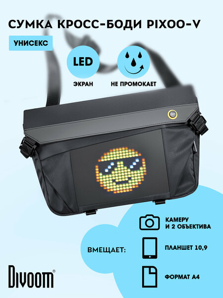 Divoom Pixoo-V — это не просто практичный аксессуар для повседневной жизни. Это умная, стильная и креативная сумка, которая умеет выражать эмоции, настроение и даже твою индивидуальность. Она буквально говорит за тебя — с помощью встроенного LED-экрана, управляемого через удобное мобильное приложение. Ты можешь создавать свои собственные пиксельные арты, надписи, анимации и мемы. Хочешь быть дерзким, милым, романтичным или ироничным? Просто выбери нужную графику, и твоя сумка мгновенно адаптируется под твой стиль и настроение. Это идеальный способ выделиться из толпы или молча сказать то, что хочешь.