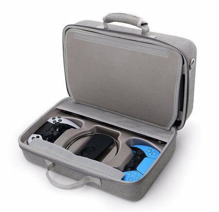 Сумка для консоли и аксессуаров PlayStation 5 Slim от Dobe - TP5-3590. Сумка для консоли и аксессуаров Dobe TP5-3590 предназначена специально для PlayStation 5 Slim. Изготовлена из высококачественной нейлоновой ткани, устойчивой к царапинам, и твердой оболочки EVA. Мягкая подкладка обеспечивает дополнительный комфорт при использовании. Сумка обеспечивает исключительную прочность и защиту для вашей консоли, а также для аксессуаров, таких как 2 геймпада, вертикальная подставка, зарядная станция для контроллеров и кабели. Сумка выполнена в сером цвете, что делает ее практичной и стильной. В комплекте поставляется одна сумка для консоли и аксессуаров. Выбирая сумку для консоли и аксессуаров Dobe TP5-3590, вы получаете надежный и удобный аксессуар для транспортировки вашей PlayStation 5 Slim и аксессуаров.
