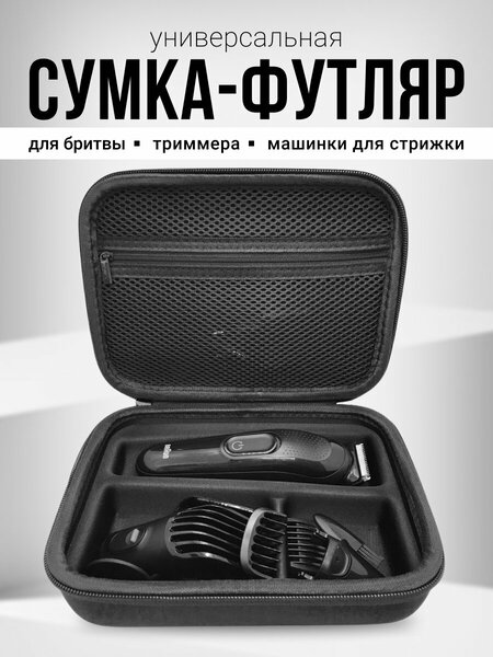 Универсальный чехол для триммера Braun подходит для следующих моделей : MGK3220; RKB2294; BT7220; BT3241; MGK3242; MBBT7; MGK5260; BT3222; MGK5280; BT3000; MGK5245; SK3000; сумка для триммера braun так же может подойти для других триммеров не превышающих размеры отделов, так же может быть использована как сумка для машинки для стрижки, чехол для машинки для стрижки, футляр для машинки для стрижки, сумка для парикмахерских инструментов, сумка парикмахера. Футляр для триммера не занимает много места, чехол для триммера с насадками имеет компактные размеры 22х16х7см , позволяет брать его с собой в командировку или путешествие. Защитный чехол для электробритвы имеет отдельный отдел для щёточки, аксессуаров, зарядного устройства. Сумка для бритвы имеет отделы для удобства хранения насадок. Чехол для электробритвы легкий и прочный: материал EVA, отделка бархатная ткань. Данная Сумка для триммера может быть прекрасным подарком для ваших близких.