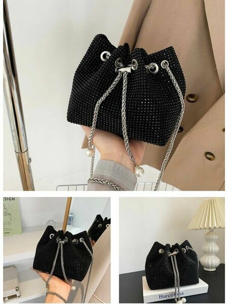 Ее блестящая вечерняя спутница словно звездное небо, наполненное сияющими бриллиантами. Она идеальна для создания захватывающего образа на вечеринке или ужине в ресторане. Сочетание черного цвета и страз придает ей неотразимое очарование, делая ее непревзойденным аксессуаром для женщины, которая ценит уникальность и неповторимость. Эта удивительная сумочка на завязках подарит ей возможность провести все необходимые мелочи на вечер не только стильно, но и удобно. Цепочка со стразами дополняет образ изысканным деликатным штрихом. Внутри она вмещает все необходимое: косметику, телефон и другие женские секреты.