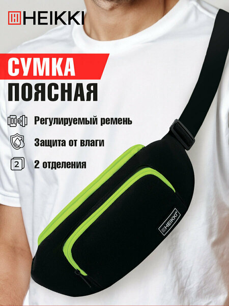 Сумка на пояс HEIKKI RIO - идеальный компаньон для активных людей! Эта стильная сумка через плечо сочетает в себе комфорт и функциональность, идеально подходя для ежедневного ношения, велосипедных прогулок или бега. Универсальный черный цвет с яркими салатовыми молниями делает барсетку привлекательной для всех, кто ценит стиль и практичность. Сумка мужская и женская на пояс имеет вместительный объем и надежную застежку-фастекс, позволяющую легко фиксировать её на поясе или плече. Регулируемый ремень подходит для обхвата талии до 120 см, что делает поясную сумку универсальной для любого пользователя. Изготовленная из высококачественного водоотталкивающего полиэстера, эта маленькая бананка обладает отличной устойчивостью к солнечным лучам и легкостью в уходе. Загрязнения легко удаляются с помощью мыла и губки, что делает её идеальным выбором для активного образа жизни. Специальная амортизирующая подкладка защищает содержимое, обеспечивая дополнительную безопасность. Сумка кросс-боди упакована в плотный ПЭТ-пакет, что гарантирует сохранение её товарного вида. Не упустите возможность сделать вашу повседневную жизнь комфортнее с сумочкой на плечо HEIKKI RIO! • Применение: на пояс, через плечо, на плечо. • Количество отделений: 1. • Количество карманов: 1 шт. • Цвет: черный/салатовый. • Высота: 12 см. • Ширина: 30 см. • Длина сумки с ремнем: 1.25 м. • Материал: полиэстер. • Серия: RIO contrast. • Вес: 120 г. • Артикул производителя: 272615.