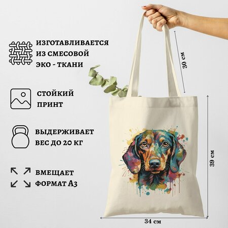 шоппер с принтом "Пятнистая такса", шопер авоська холщовая с рисунком в подарок