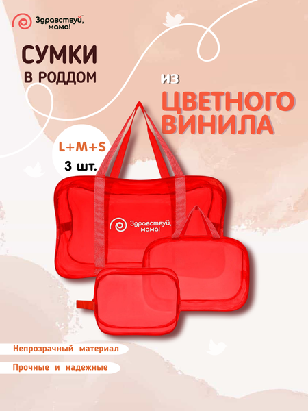 Сумка в роддом, прозрачная готовая для мамы и малыша "здравствуй, мама!", цвет темно-красный, набор из 3 шт.