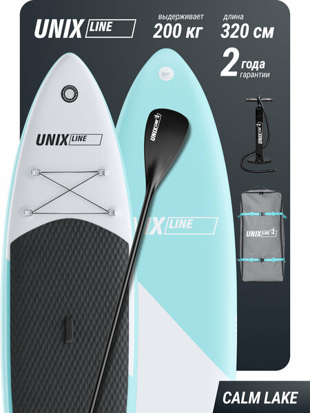 Сапборд надувной для плавания UNIX Line sup board Calm Lake 320 см до 200 кг, двухслойный, с веслом, рюкзак, насос