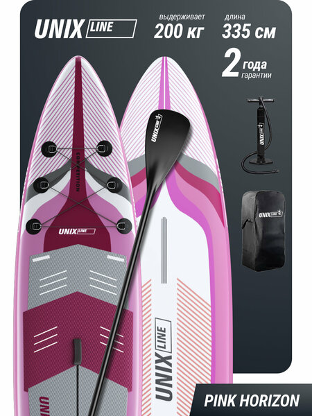 Сапборд надувной для плавания UNIX Line sup board Pink Horizon 335 см до 200 кг, двухслойный, с веслом, рюкзак, насос