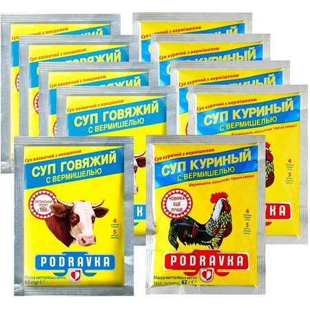 Супы Подравка/Podravka с вермишелью: куриный и говяжий,10 штук
