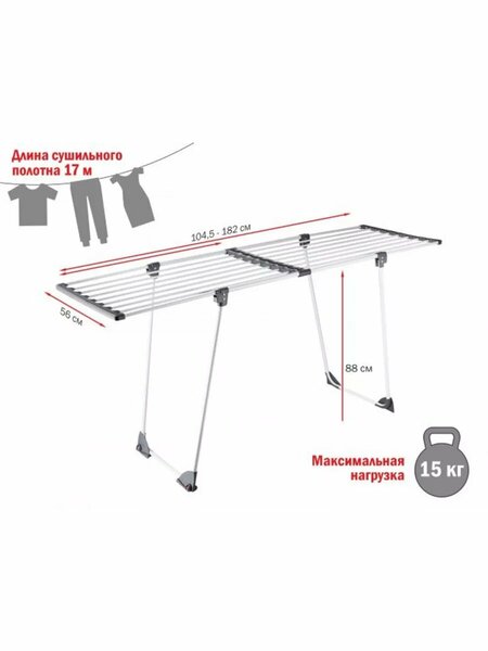Сушилка для белья напольная телескопическая PERFECTO LINEA Ruby – это незаменимый помощник в быту. Она предназначена для просушки белья после стирки и выполнена из стали, что гарантирует ее долговечность. Особенностью данной модели является телескопическая конструкция, которая позволяет регулировать высоту сушилки от 100 до 182 см. Это позволяет сушить большое количество белья, при этом занимая минимум места в собранном состоянии. Максимальная нагрузка на сушилку составляет 12 кг, что делает ее подходящей для сушки различных типов белья. Сушилка оснащена приспособлением для сушки носков, что делает ее еще более функциональной. Прутья сушилки выполнены из металла и имеют общую длину 17 метров, что обеспечивает равномерное распределение белья. Сушилка имеет две сушильные зоны и 14 металлических прутьев, что позволяет сушить одновременно большое количество белья. Сушилка для белья PERFECTO LINEA Ruby проста в использовании, экономична и занимает минимум места. Высокое качество материалов и изготовления гарантирует долговременную эксплуатацию.