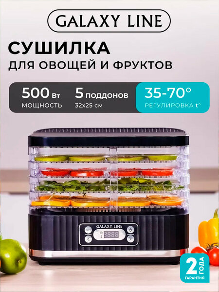 Электросушилка GALAXY LINE GL2638 - это незаменимый помощник на кухне, который позволяет заготавливать овощи, фрукты, грибы и лекарственные растения без использования консервантов с минимальной потерей полезных веществ. Сушилка оснащена электронным таймером, который позволяет установить время сушки до 72 часов. По истечении этого времени сушилка автоматически выключается, что избавляет от необходимости следить за ее работой. Мощность сушилки составляет 500 Вт, что обеспечивает равномерное и быстрое высушивание продуктов. Сушилка имеет 5 регулируемых по высоте поддонов, что позволяет разместить в небольшом объеме максимум продуктов и добиться их наилучшего распределения. Сушилка имеет регулятор температуры от 35 до 70°С, что оптимально для обработки любых продуктов. Встроенный вентилятор равномерно нагнетает воздух в пространство сушилки, обеспечивая необходимые условия для эффективного сохранения полезных микроэлементов. Материал корпуса и поддонов - комбинированный, что обеспечивает долговечность и надежность в использовании. Прозрачные пластиковые поддоны позволяют наблюдать за процессом сушки. Сушилка GALAXY LINE GL2638 идет в комплекте с книгой рецептов, что разнообразит ваше меню и поможет сохранить все полезные витамины и микроэлементы в продуктах. Сушилка имеет стильный дизайн и представлена в различных цветах: бежевом, белом, бесцветном, зеленом, красном, сером и черном.