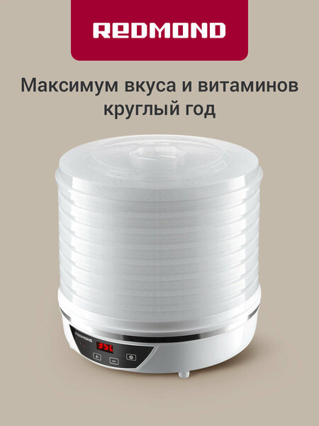 Сушилка для овощей и фруктов редмонд FD1103, дегидратор, 8 регулируемых уровней, поддон для пастилы (белый)