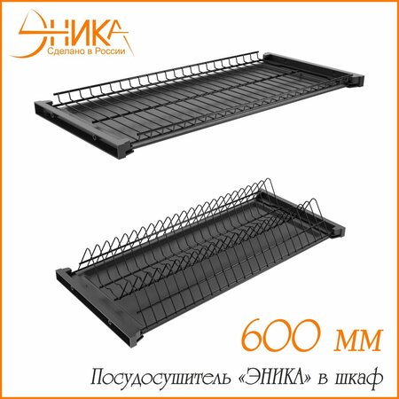 Двухуровневая сушилка идеально подходит для верхнего кухонного шкафа с внешним размером 60 см (толщина ДСП 16 мм, 18 мм). В комплект входит: − сетка для тарелок (помещается 23 предмета), цвет черный − сетка для чашек, цвет черный − 2 поддона пластиковых жестких для сбора воды, которые легко снимаются для мытья, цвет черный − 4 черных крепления и 8 саморезов. Высота уровней сушилки позволяет устанавливать в шкаф третий уровень сеток либо дополнительную полку. Сетки выполнены из высококачественной стали с полимерным антикоррозионным покрытием "Черный матовый". Уникальная жесткая конструкция сушилки надежно фиксирует тарелки любой формы: плоские, глубокие, блюдца. Достоинства: − 2 поддона из жесткого пластика − Высокое качество, прочность, надежность − Простота сборки (крепеж и инструкция в комплекте) − Соответствует ГОСТ − Гарантия 1 год