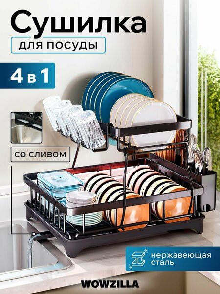 Отличный кухонный помощник! Сушилка для посуды двухъярусная экономит вам время и место! Посуду больше не нужно протирать или оставлять до полного высыхания! С помощью оттока для воды вся лишняя влага стечет прямо в раковину. Два яруса позволят вам поместить на сушилку еще больше посуды. Особенности: