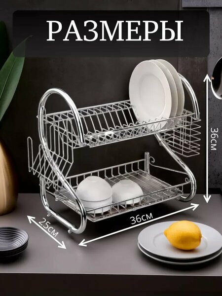 Сушилка для посуды со съемным поддоном металлическая сделана из высококачественных материалов и защитой от ржавчины. Стильный дизайн сушки - современное решение для хозяек. Эта кухонная подставка вмещает набор посуды столовой, тарелки, стаканы, кружки, лоток для ложек и вилок и детскую посуду. Значительно экономит место и отличается простотой использования. Компактная и вместительная металлическая сушилка имеет минималистичный дизайн и универсальный цвет, который впишется в любой интерьер современного дома, дачи, загородного коттеджа, ее можно использовать и как настольную или как встраиваемую в шкаф. Сушилка для посуды является популярным и универсальным предметом в домашем хозяйстве, позволяющим эффективно использовать пространство в вашем доме. Изготовлена из высококачественного материала, обладающего прочностью, достаточной для хранения чашек, ложек и другой утвари. Подставка имеет два яруса за счет чего удобно расположить тарелки. Стальная этажерка не только уникальная и стильная благодаря своему дизайну в форме буквы "S", но и оснащена особым покрытием, придающим ей блеск и гладкую поверхность. Вместительность устройства дает возможность содержать, ложки, половники и палочки для еды безопасно и надежно. Она разработана на двух уровнях для комфортной организации крышек. С помощью этого приспособления вы сэкономите место в шкафах. Такая полка необходима в каждой столовой. Размеры составляют 44х34х25.