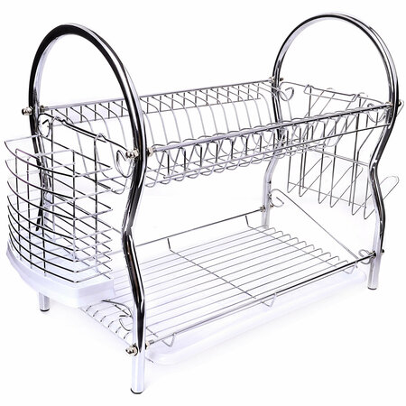 Двухъярусная сушилка для посуды выполнена из высококачественной хромированной стали и пластика. В сушилке предусмотрены отделения для тарелок, чашек и столовых приборов. Благодаря конструкции с вместительным поддоном для сбора воды, Вы не будете тратить время на вытирание посуды после мытья. Стальная часть конструкции защищена от коррозии хромированным покрытием, что гарантирует ей продолжительное время эксплуатации и эстетичный внешний вид. Сушилка для посуды станет незаменимым помощником на кухне. Компактность сушилки позволит расположить ее по Вашему усмотрению - на свободном крыле мойки, на столешнице или в навесных шкафах кухонного гарнитура. Оригинальный и современный внешний вид идеально дополнит интерьер кухонного пространства. Размер: высота 44 см, ширина 24 см, длина 37 см.
