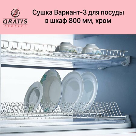 Классическая сушилка Вариант-3 для посуды. Два уровня, с пластиковыми поддонами для каждого. Для шкафа шириной 80 см (наружный размер со стенками). Для установки в шкаф без дна - для лучшей вентиляции внутри шкафа. Сетка для тарелок - 1 шт. Сетка для чашек - 1 шт. Держатели сеток - 4 шт. Поддон - 2 шт. Алюминиевый профиль для корпуса - 2 шт.