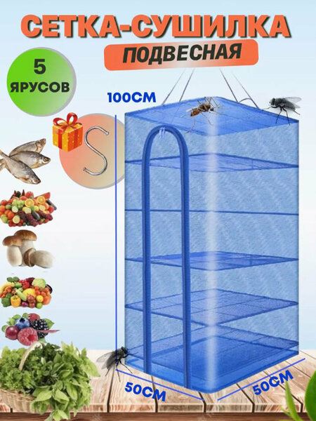 Сушилка для рыбы, фруктов и овощей 50х50 5 ярусов для рыбалки