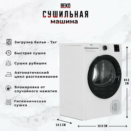 Сушильная машина Beko BM3T37220 оснащена тепловым насосом, который обеспечивает более эффективное и быстрое удаление влаги из белья. Это позволяет экономить электроэнергию и время, а также снижает риск образования плесени и неприятных запахов. Модель имеет 15 различных программ сушки, включая режимы для синтетики, хлопка, джинсов, сорочек (рубашек), постельного белья, полотенец и даже быструю сушку. Это позволяет выбрать оптимальный режим для каждого типа ткани и степени влажности. Сушильная машина имеет фронтальную загрузку, что обеспечивает удобство использования и позволяет сушить большое количество белья одновременно. Максимальная загрузка составляет 7 кг. Устройство оснащено дисплеем, что делает его использование простым и удобным. Безопасность использования обеспечивается блокировкой от детей и защитой от перегрева. Сушильная машина Beko BM3T37220 имеет класс энергопотребления A+, что говорит о ее энергоэффективности и экономичности. Уровень шума составляет всего 64 дБ, что делает работу устройства практически бесшумной. Материал бака сушильной машины — нержавеющая сталь, что гарантирует долговечность и надежность устройства.