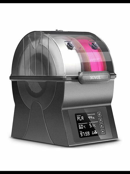 Достоинства:Отлично сушит пластик Недостатки:Вентилятор посвистывает и очень крутой изгиб филамента на выходе из сушилки.Боюсь что хрупкий пластик может сломаться. Экран при нажатии плывет волнами пикселей.