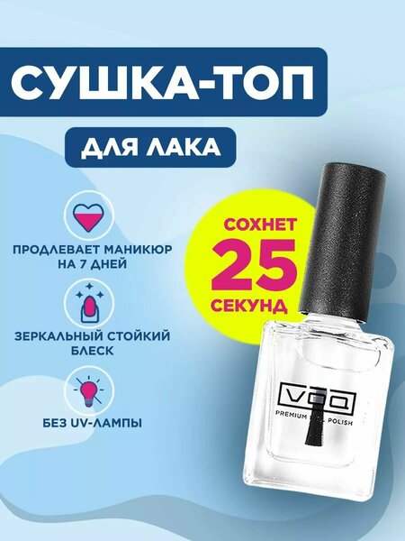 Лак для ногтей VOQ Fast Dry Top Coat – это топ-сушка объемом 11 мл. Новое решение среди закрепителей, которое быстро просушит декоративное лаковое покрытие и защитит от агрессивной внешней среды. Оно сэкономит массу времени, подойдет для занятых людей и тех, кто хочет получить дополнительный блеск на своих ноготках. Топ-сушка VOQ Fast Dry Top Coat улучшит внешний вид ногтей и увеличит срок службы маникюра. Этот гелеобразный лак закрепитель обладает функцией выравнивания. Он замаскирует мелкие бугорки и неровности на поверхности ногтей, придаст им свежий и аккуратный вид. Ваши руки будут выглядеть, как после посещения салона. Для нанесения топа-сушки на ногти не потребуется профессиональные умения. Он легко распределяется по поверхности без бугров и полос. Результат использования: блестящая, аккуратно прокрашенная ногтевая пластина. Лак топ-сушка VOQ Fast Dry Top Coat – путь к аккуратному и долговечному маникюру. Он не создает липкого слоя и позволит выглядеть безупречно.