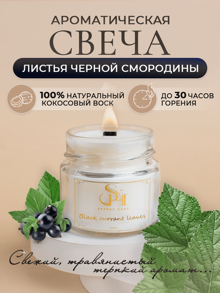 Окунитесь в атмосферу свежести и натуральности с ароматической свечой "Листья черной смородины". Этот изысканный аромат наполнит Ваше пространство тонкими нотами сладких ягод и пряных листьев, создавая ощущение умиротворения и расслабления. Сердце композиции раскрывается нежными оттенками черной смородины, дополненными пряными акцентами листьев. Эта гармоничная смесь наполняет воздух тонким, освежающим ароматом, который мягко окутывает и успокаивает. Натуральный воск свечи медленно сгорает, наполняя комнату приятным, ненавязчивым запахом, который поможет Вам расслабиться и насладиться моментом. Зажгите эту свечу, чтобы создать уютную, умиротворяющую атмосферу в Вашем доме.