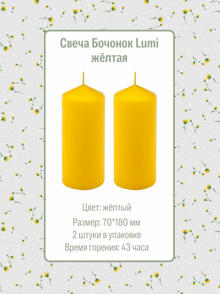 Свечи изготовлены из парафина и упакованы в индивидуальную пленку. Создадут в доме теплую и уютную атмосферу, а также станут прекрасным подарком. Время горения - 43 часа. Комплект: 2 шт. При горении свеча не коптит и не течет. Хранить при температуре: от -10 до +25 градусов по Цельсию. Срок годности: не ограничен. Товар не подлежит обязательной сертификации и декларированию. Цветовой оттенок товара может отличаться от представленного на изображениях.