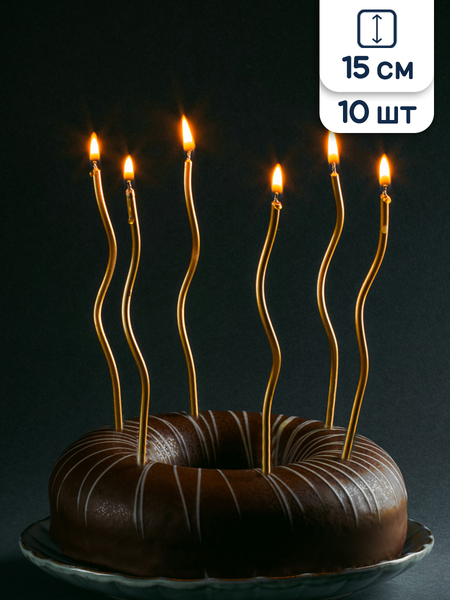 Свечки для торта, которые превратят ваш праздничный стол в настоящую сказку! Золотые парафиновые длинные тонкие праздничные свечи для торта спирали высотой 15 см в количестве 10 штук. Эти длинные свечи спирали станут незаменимым декором для вашего торта на день рождения. Они создадут атмосферу праздника и добавят особое очарование сервировке вашего стола. Задувание свечей – традиция, которая существует много лет и всегда встречается улыбками и аплодисментами гостей. А особенно такой ритуал полюбился детишкам, они с нетерпением ждут заветного дня, чтобы задуть свечи и загадать желание. Набор свечей для торта включает в себя высокие и стильные свечи на торт, которые станут настоящим украшением на вашем дне рождения. Яркие и красочные, эти свечи не оставят равнодушными ни взрослых, ни детей. Свечи для торта длинные идеально подходят для оформления торта на день рождения. Будь то оформление торта для ребенка или взрослого, эти свечи добавят особый шарм и станут прекрасным украшением на вашем столе. Наша коллекция свечей для торта станет великолепным дополнением к вашей праздничной сервировке стола. Набор свечей включает в себя классические свечи для торта, они создают идеальное сочетание с другими аксессуарами и украшениями на вашем праздничном столе. Сочетание ярких цветов и оригинальных форм свечей придадут вашему торту неповторимый вид. Свечи на торт с длинными спиральными формами смотрятся очень эффектно и делают ваш торт по-настоящему праздничным и запоминающимся. Их высота добавит визуальную привлекательность и стиль всей сервировке стола. Сервировка стола все для праздника - именно этот набор свечей для торта воплощает идею праздничного украшения. Подчеркните эксклюзивность вашего стола и сделайте день рождения незабываемым с помощью этих свечей. Свечи для торта спираль добавят изюминку вашему оформлению. Тонкие и изящные, они идеально дополнят ваш торт, создавая уникальную атмосферу и подчеркивая тематику вашего праздника. Набор свечей включает элегантные свечи, которые будут радовать ваш глаз своим красивым дизайном и оригинальной формой. Свечи также отличаются длительным горением, что позволит вам дольше наслаждаться праздником и создать атмосферу торжества. Они также могут стать прекрасным подарком для ваших близких, которые будут оценивать ваше внимание к деталям при организации праздника. Украшения ко дню рождения делают ваше торжество еще ярче и красочнее. Используйте эти свечи для торта, чтобы создать неповторимую атмосферу и подчеркнуть особую важность дня рождения и любого другого праздника. Праздничные свечи в торт идеально дополнят ваш праздничный стол и подарят незабываемые моменты радости и счастья. Будьте в центре внимания и порадуйте своих гостей прекрасным оформлением вашего торта. Эти свечи спирали длинные на день рождения можно использовать, как декор для торта. Данный набор свечей идеальный выбор для тех, кто ценит качество и уникальность. Изумите своих гостей и создайте незабываемое оформление торта с помощью наших длинных свечей. Они подарят вашему дню рождения или любому другому торжеству элегантность, стиль и радостный настрой.