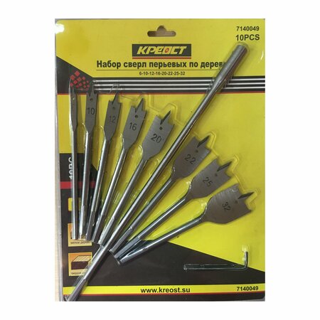 Сверло перовое по дереву набор 10 предметов (6,10,12,16,20,22,25,32)
